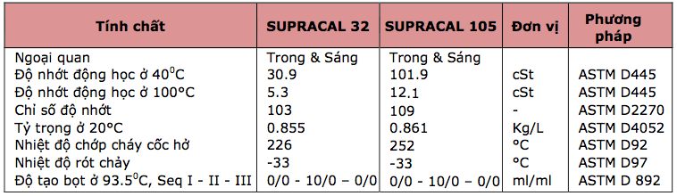Thông tin sản phẩm : SUPRACAL là dầu truyền nhiệt chất lượng cao được pha chế từ các loại dầu gốc tinh lọc và các phụ gia tiên tiến . Sự kết hợp này đem lại tính năng tuyệt với cho các sản phẩm khi sử dụng trong cácheej thông truyền nhiệt tuần hoàn kín hoặc hở.